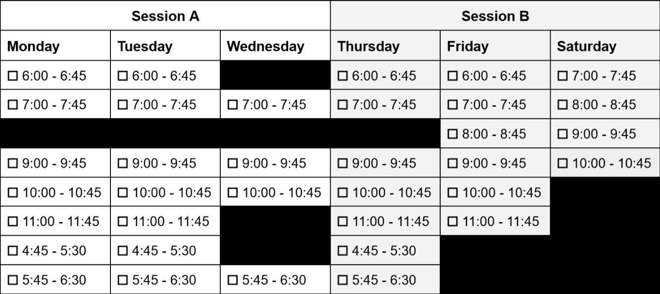 Life happens — we get it! If you miss a session for any reason, you’re entitled to a make-up session.You can schedule make-up sessions: